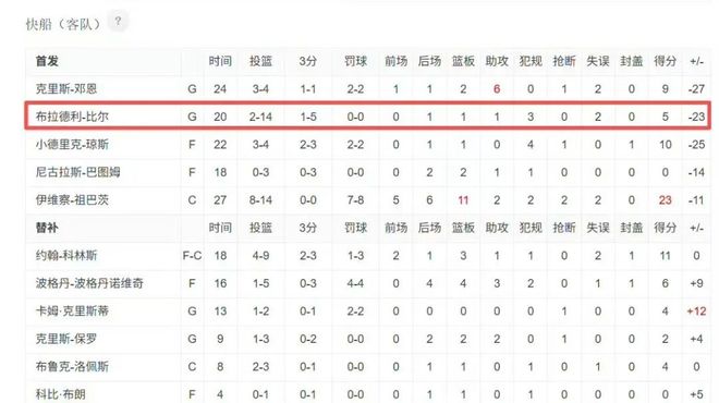 快船谁都可以得分,就比尔不可以